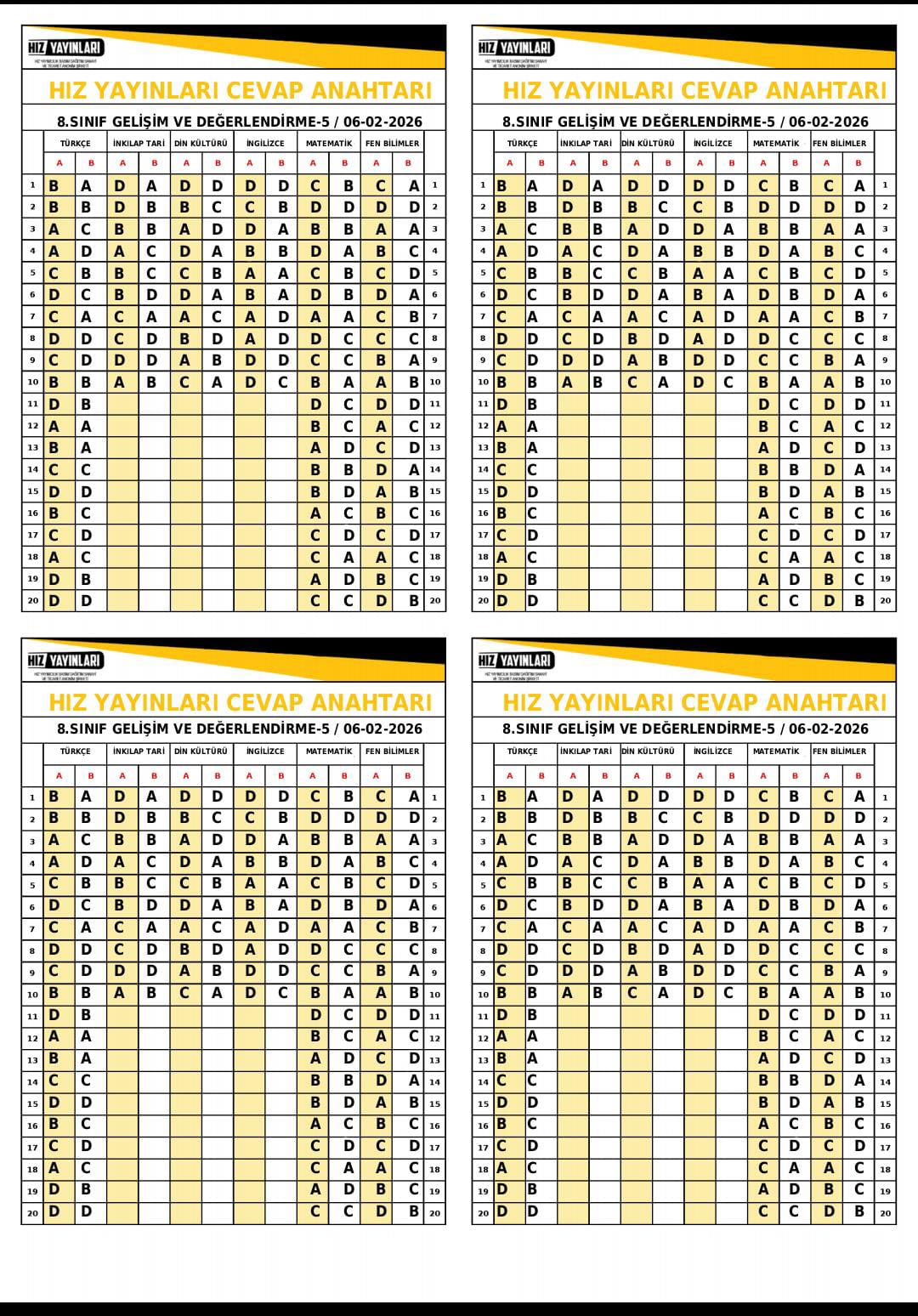 ✅ 8. Sınıf Deneme Sınavı Cevap Anahtarı – Performans ve Motivasyon Değerlendirmesi