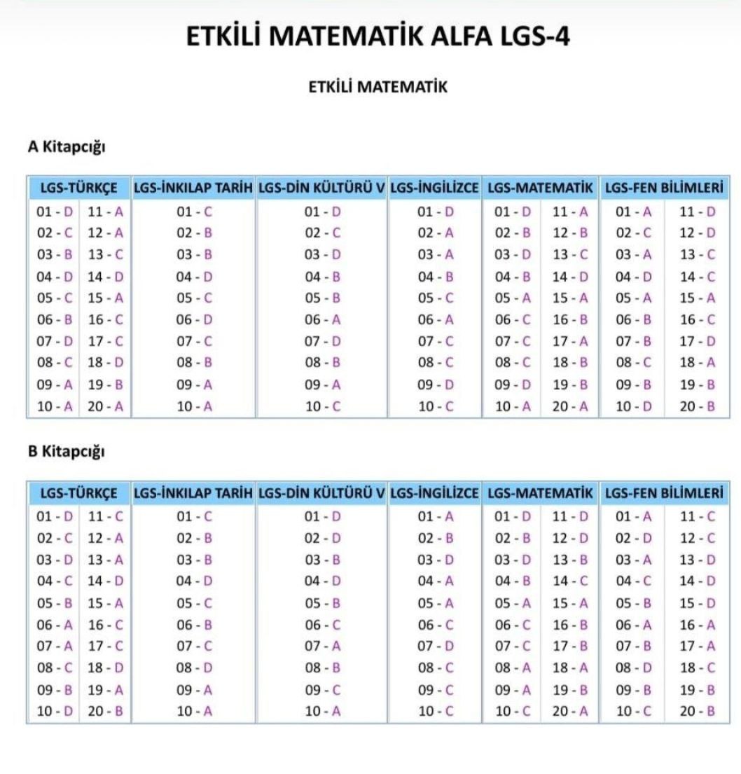 Etkili Matematik Yayınlarına ait 4. deneme sınavı resmi cevap anahtarıdır...